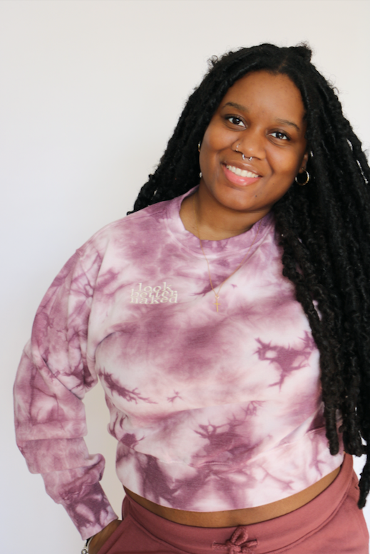 The Dakota Crewneck is a must have for spring! This crewneck features a trendy tie dye pattern, a slightly cropped feel to add a bit of sex appeal and an ivory embroidered "look better naked"