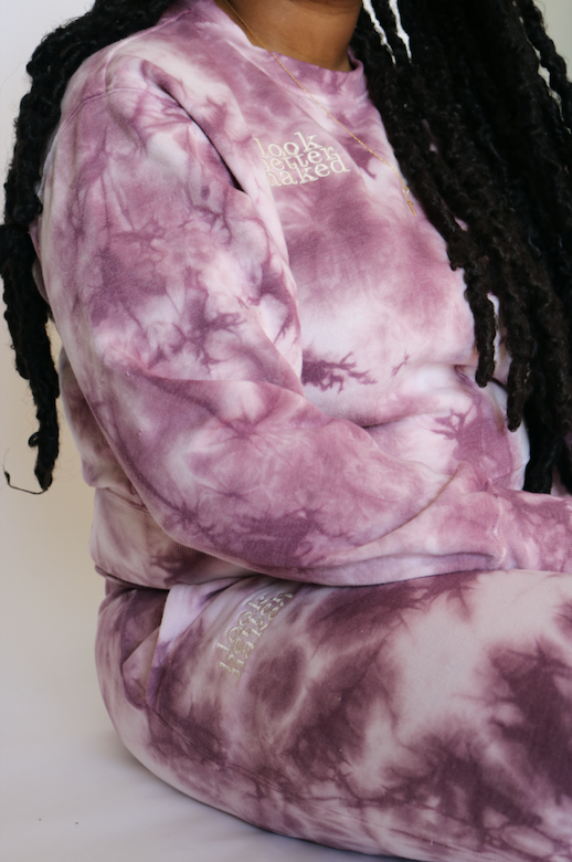 The Dakota Joggers are a must have for spring! These joggers feature a trendy tie dye pattern, fleece on the interior for ultra softness and an ivory embroidered "look better naked"
